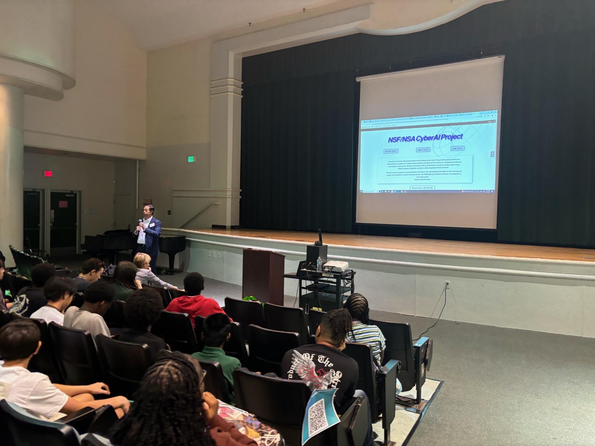 Moreover, we also coordinated a presentation to Nova High School (part of the Broward County Public Schools) and invited students to NSU Campus on cybersecurity careers at NSA by Ashley Greeley and Dr. Yair Levy to over 160 middle and high school students. These two presentations took place on October 2, 2024, one at the high school and another at NSU’s CORTEX Lab.